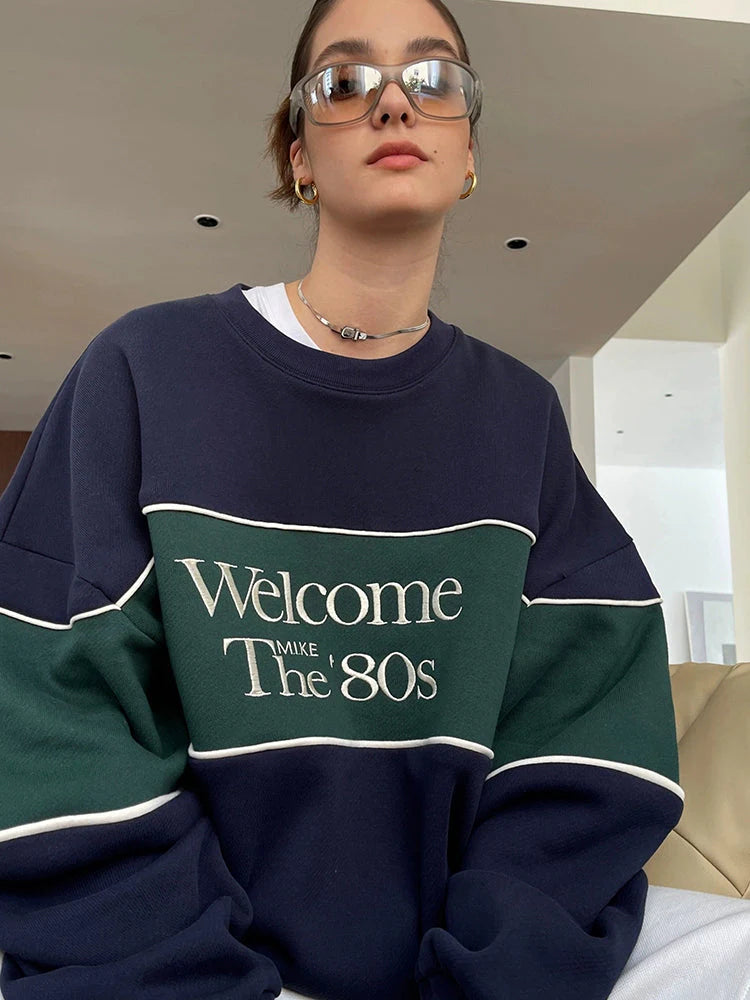 Calling all nostalgia buffs! Get the 80's Print Loose Sweatshirt and rock the Y2K streetwear style. Boasting a vintage pullover and lazy fit in navy blue - this wear is sure to put a spring in your step! The "Welcome the 80" print adds a stylish and whimsical touch - making it the perfect pick for layering during the Cbano Autumn - Winter collection.