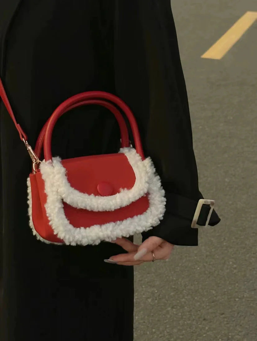Upgrade your accessories game with the Ashely Faux Wool Handbag in Red. Its mini capacity is perfect for daytime use. while the hand and shoulder bag design offers versatility. The Cbano Handbag Collection brings casual elegance to any outfit. (Carrying this bag just might make you the talk of the town!)