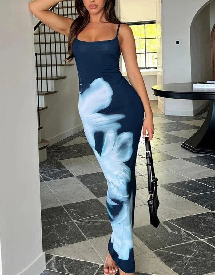 Introducing the Gracen Large Floral Maxi Dress - the perfect addition to your wardrobe from our Cbano Spring-Summer Collection. This sleeveless bodycon dress features a slim fit. accentuating your curves in bold black. blue. pink. or white colors. Look great and feel comfortable in this versatile and stylish dress.