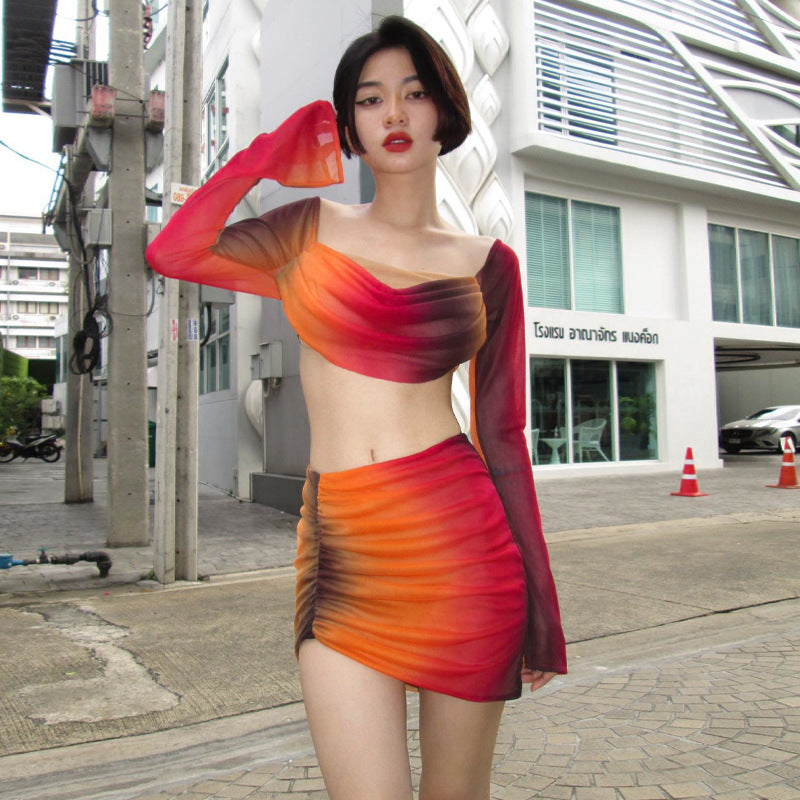 Get ready to stand out in the Emily Skirt Set! This bright red set features a long sleeve crop top with a playful square neck. and an asymmetrical high waisted mini skirt for a slim and sexy fit. Perfect for any occasion. this set is part of the Cbano Spring-Summer Collection. Get ready to turn heads and have some fun!