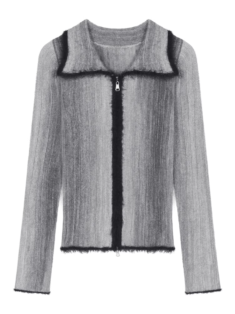 Gradient color knitted cardigan for women double zipper sweater
