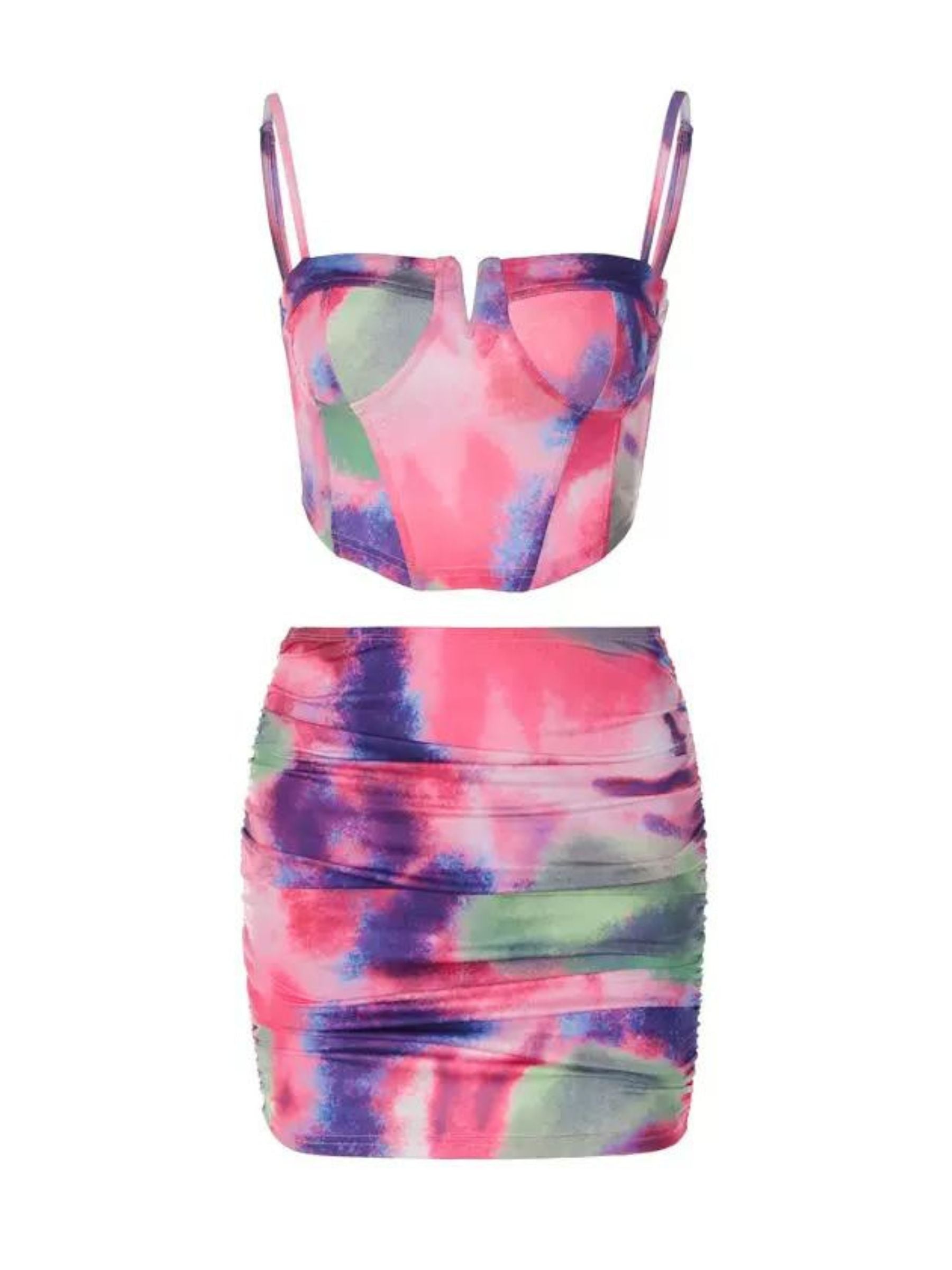 Be the life of the party in our Irene Skirt Set in Purple! This Cbano set features a playful sleeveless crop top and a high waist mini skirt with a fun. printed design. Perfect for a sexy and casual look. this set is part of our Spring-Summer Collection. Available now!