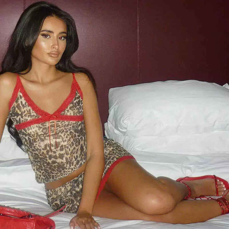 Experience the wild side of fashion with our Nirvi Leopard Mesh Skirt Set. This Cbano Matching Set Collection includes a slim fit skirt and top with intricate lace details and a bold leopard print. Stand out in style with this daring and playful two piece set.