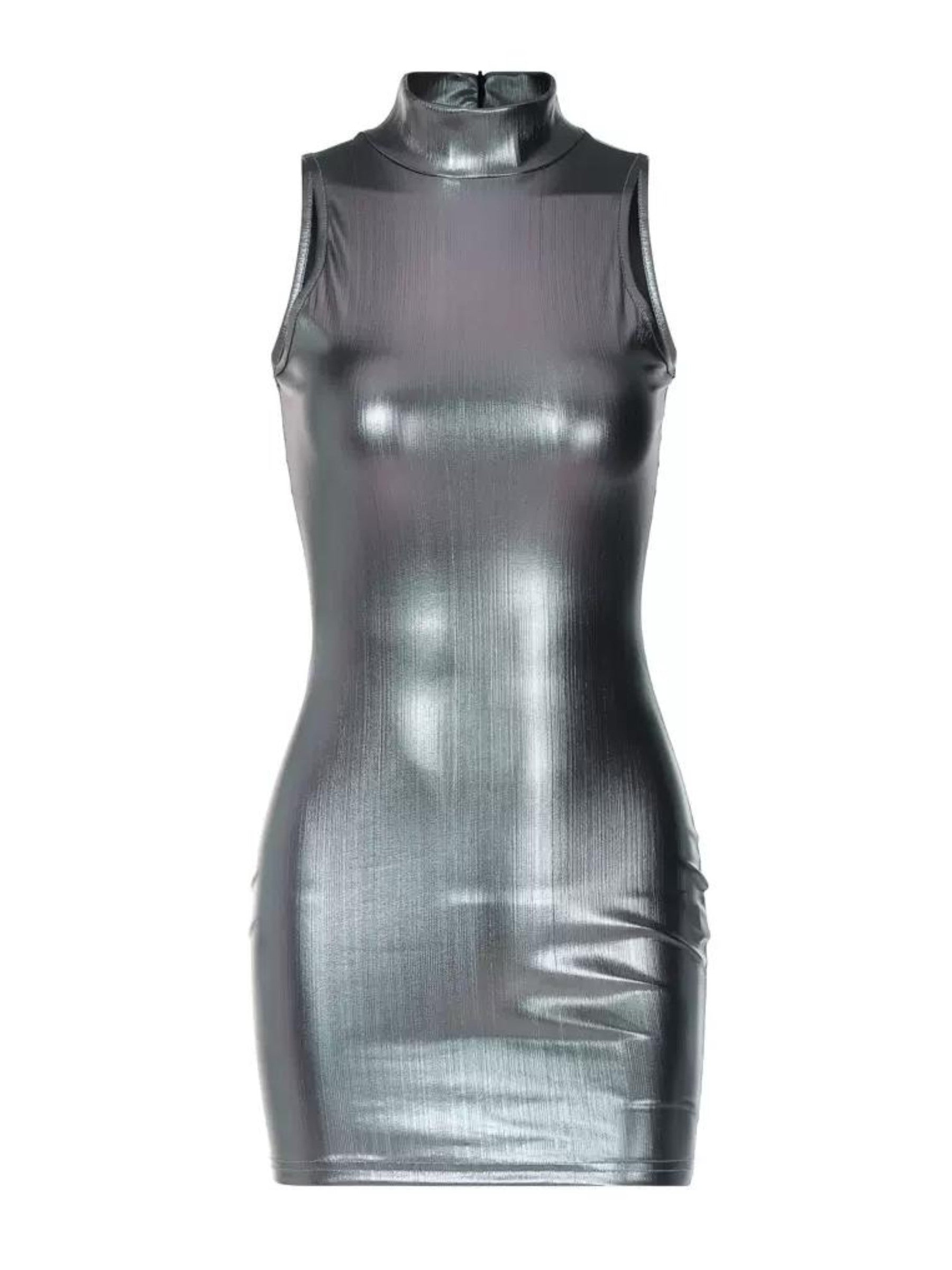 "Get ready to turn heads in the Olga Mini Dress from the Cbano Evening Dress Collection! This stunning silver dress features a bodycon fit and slim silhouette. with a chic half high-neck and sleeveless design. Perfect for any occasion. the zipper closure adds an extra touch of elegance. Stand out in style with this must-have dress!"