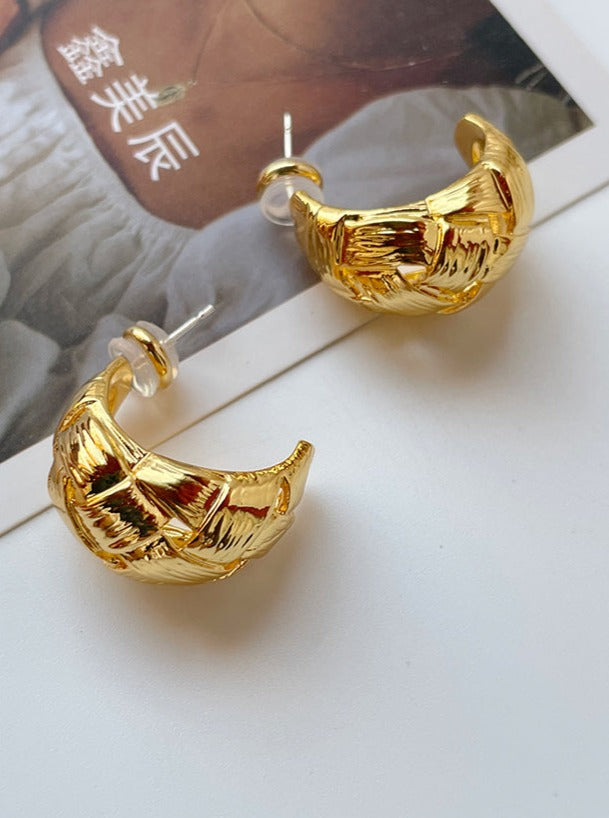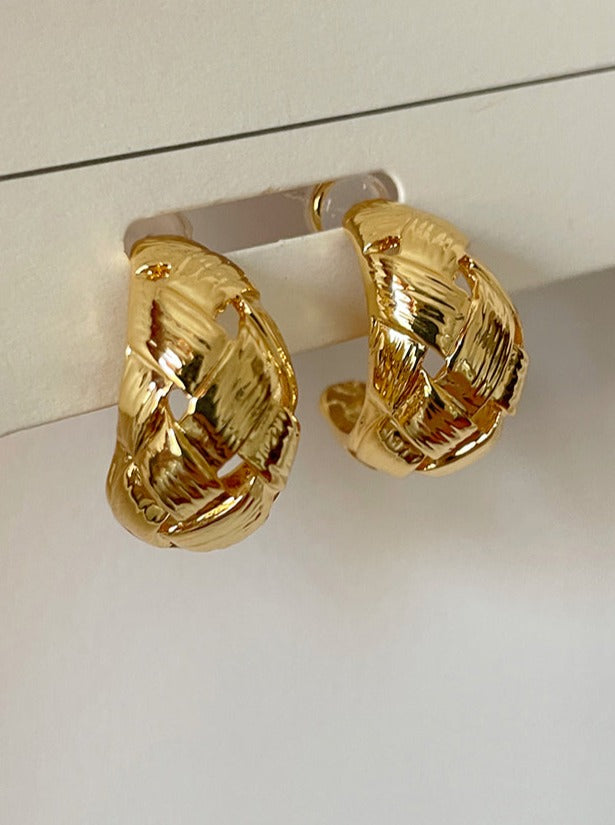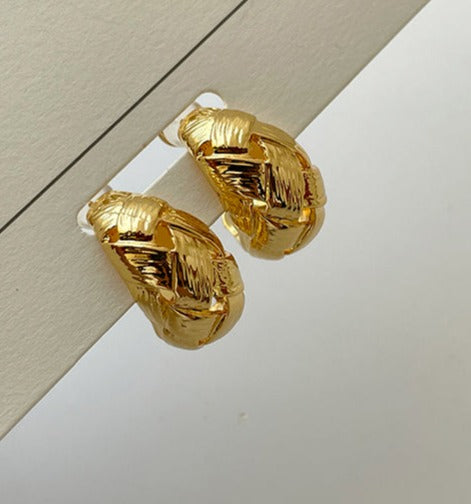 Experience the luxury of these one-of-a-kind Preston Earrings. crafted with brass pleated in real gold for a retro style that stands apart! With an irregular. aesthetic. yet minimal braided design. these earrings are guaranteed to make a statement. From Cbano Fashion Accessory Collection. these 2.3cm x 1.9cm stunners will have you feeling your best.
