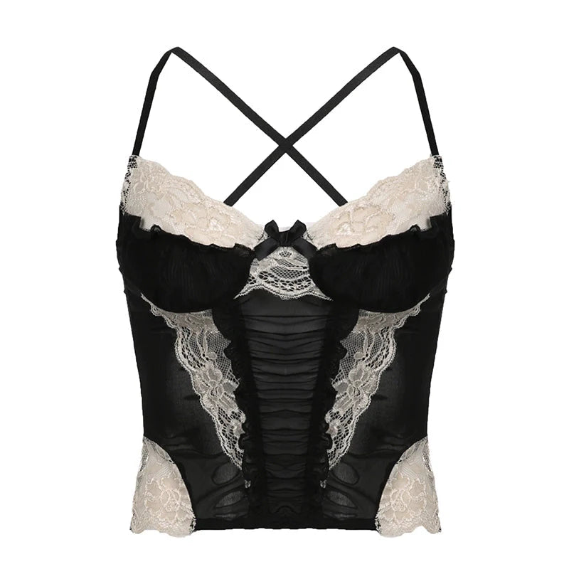 Show off your femininity and sassy style in this black Kayla Corset Top! With a cross back. lace and mesh details. and contrast color accents. you'll make a statement at your next date night. And who knows what could happen? Get ready to make moves in Cbano's Date Night Collection!