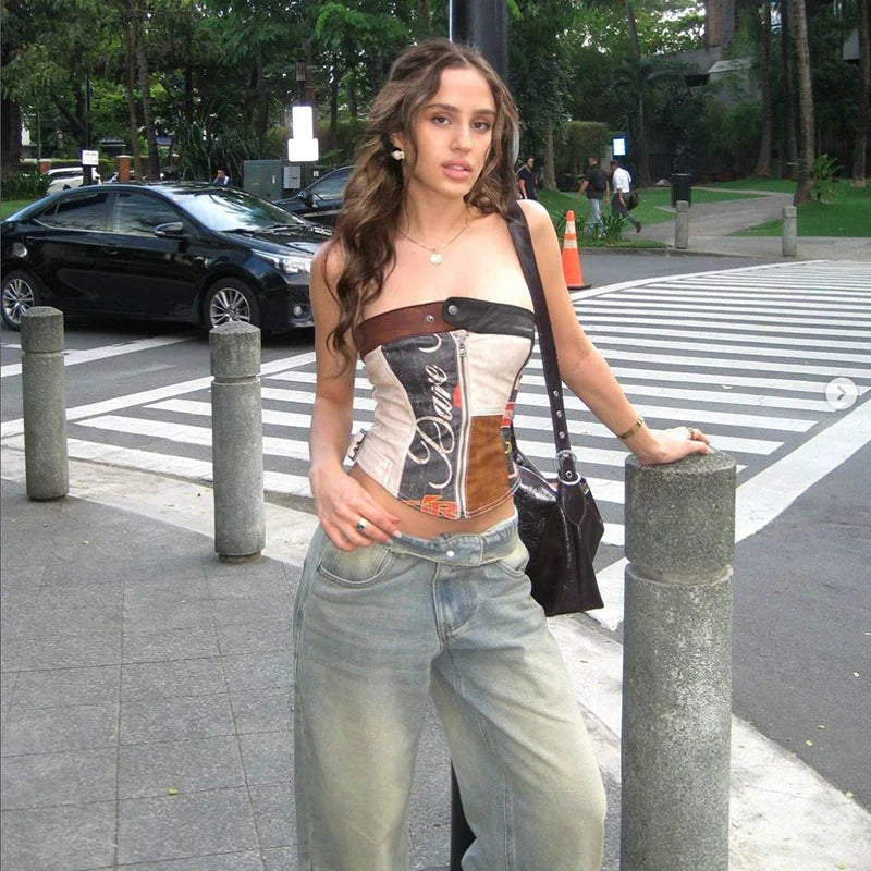 Show off your bad girl style in this Roux Leather Strapless Top! Featuring a contrast color. printed design and 'Y2k' streetwear style. you'll look fierce and fashionable in this slim-fit top. Add a dash of attitude to your wardrobe with this piece from the Cbano Streetwear Collection! So go on. show 'em who's boss.