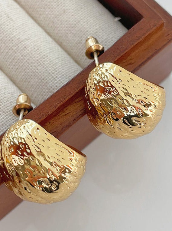Make a statement with these Sarita Earrings from Cbano Accecories Collection. featuring a minimal. yet aesthetic gold pleated look and trendy metal texture. A simple yet eye-catching accessory. these earrings can be the finishing touch to any outfit!