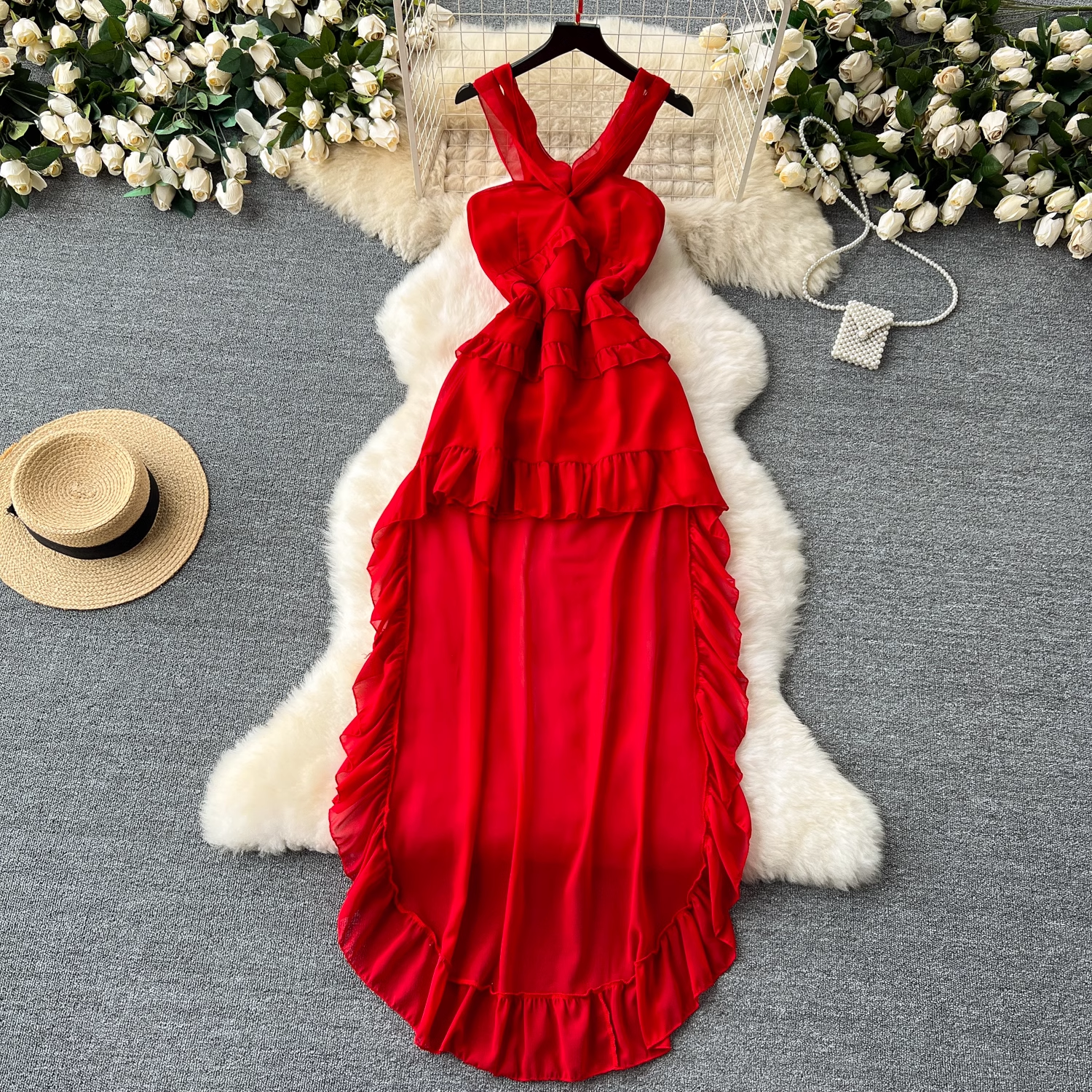 women's summer red dress