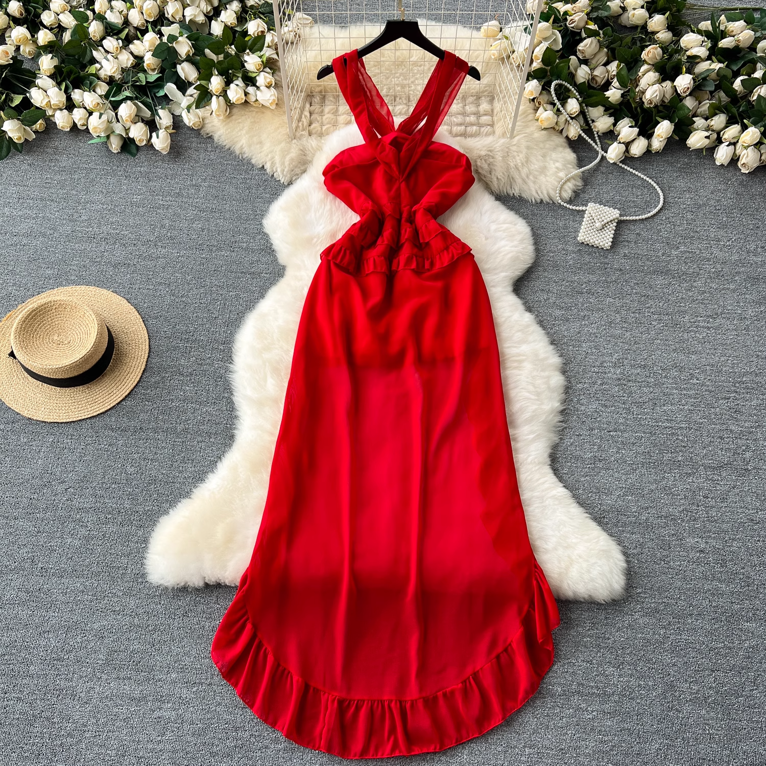 L: Length With Straps 75-142 Bust 94 Waist 82