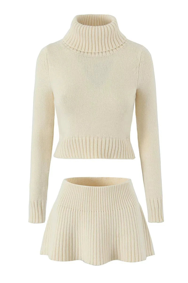 • High-Neck Long Sleeve Top and Knit Mini Skirt