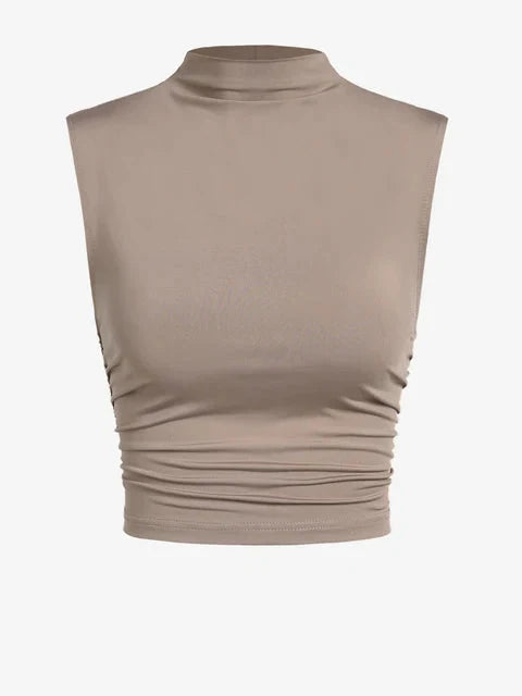 Look hot & stay cool in the Zoi Sleeveless Basic Tank Top. A fashion must-have with classic cream color. round neckline. and ruched detailing. this top has chic written all over it. Perfect for any season. it's sure to make 'em do a double-take!